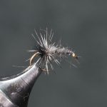 Materials- tag: black ostrich flue butt: small grizzly hackle body: muskrat underfur