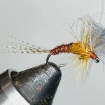 Materials: Wapsi CDC, Light Dun x2 CDC215, Wood Duck Flank, UTC Ultra Wire X-Small , Gold, Wapsi Ringneck Pheasant Tail, Orange PTP012, Whiting Bronze Grade, Ginger, Wapsi Antron Dubbing, Rust AND153 W/ a few strands of Wapsi SLF Prism, Hares Ear, Thread