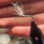Just a simple chironomoïd as I’m learning to tie them similar patterns might already exist, I just go with the flow. Tie the cdc right behind the bead for it to stick up like that