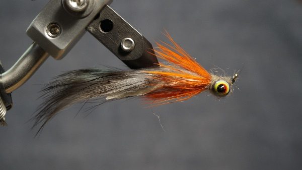 Tie in and wrap the hackle behind the eyes: tie off and clip excess